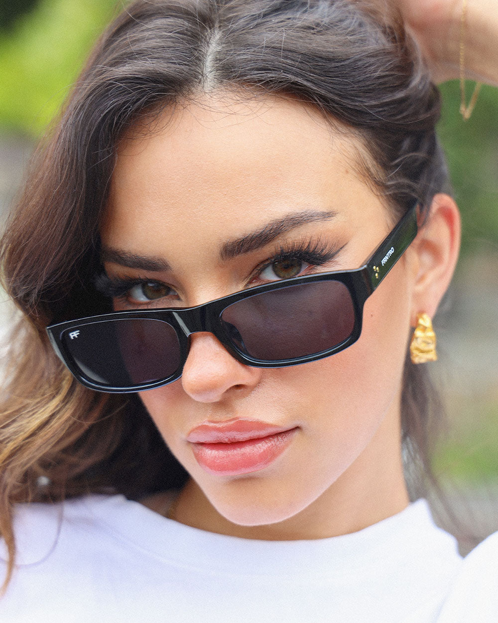 - Black squared frame with black lens