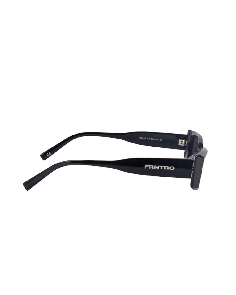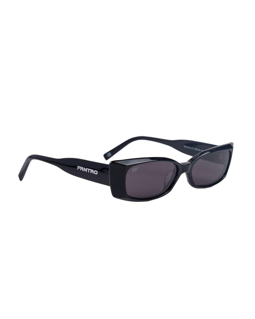 - Metallic silver FRNTRO logo on temples