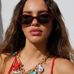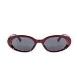 Our Classic 22 frames feature a sleek, oval-shaped frame in a rich maroon tone (THE COLOUR OF THE SEASON), complemented by dark tinted lenses. The arms feature the FRNTRO logo in gold, adding a touch of luxury and brand recognition. With their thick, high-gloss acetate construction, they offer both durability and a statement-making aesthetic, perfect for elevating any outfit with a mix of vintage charm and modern edge.